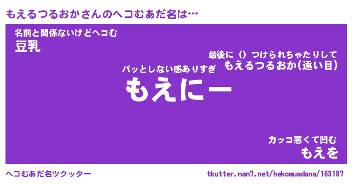 | 2回繰り返すあだ名 | 『もえもえ』『ももええ』『おろおろ』 |