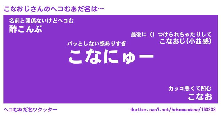 | 欧米人風あだ名 | 『マイケルこなおじ』『ウサインこなおじ』 |