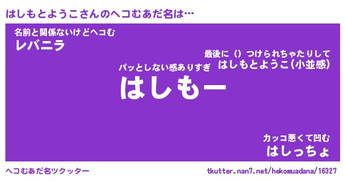 | ピコ太郎風あだ名 | 『ハコ六郎』『ピハ太郎』『ハシ太郎』 |
