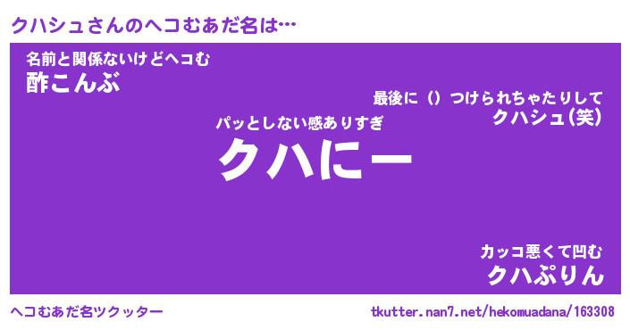 | 意味不明あだ名 | 『ペロリンクハシュ』『永久保存クハシュ』 |