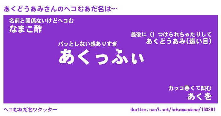 | ヒーロー風カッコイイあだ名 | 『スーパーアクドウアミ』『暗黒騎士アク』 |