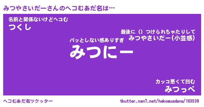 | 欧米人風あだ名 | 『マイケルみつやさいだー』 |