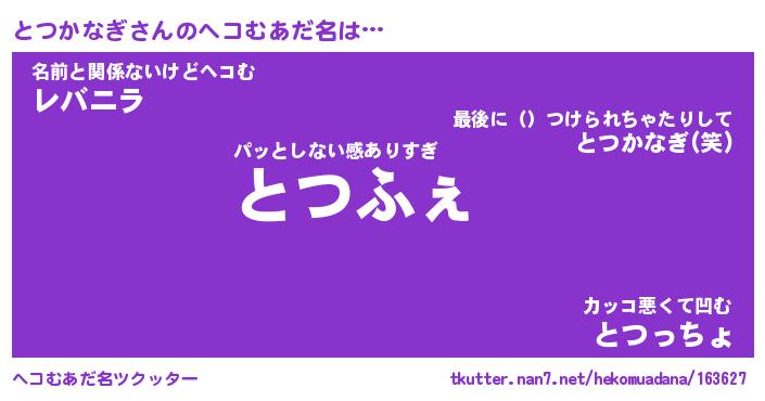 | ファンタジー風あだ名 | 『トツフェル』『エターナルトツカナギー』 |
