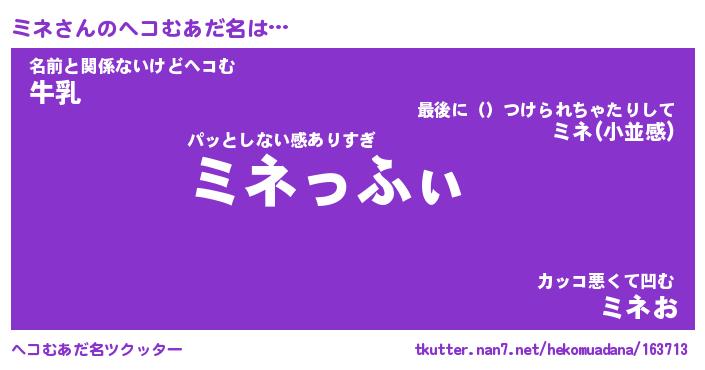 | ファンタジー風あだ名 | 『ミネフェル』『エターナルミネー』 |
