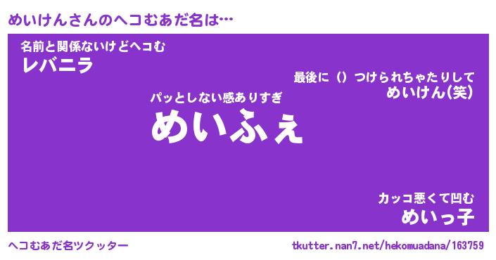 | 恥ずかしいあだ名 | 『プリティーめいけん』『めいっちょ』 |