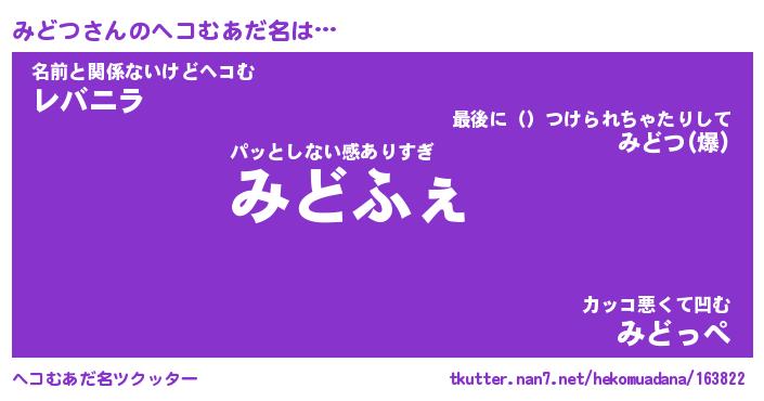 | ポケモン風あだ名 | 『ミドチュウ』『ミドツダネ』 |