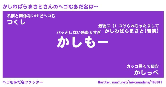 | 胡散臭い通販商品みたいなあだ名 | 『必ず成功する霊験あらたかなお札…その名も「かしわばらまさと」』 |