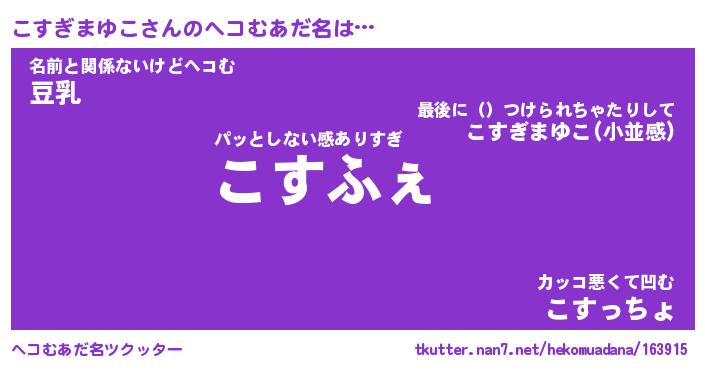 | 欧米人風あだ名 | 『マイケルこすぎまゆこ』 |