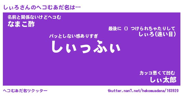 | ヒーロー風カッコイイあだ名 | 『スーパーシィロ』『ウルトラしぃろマン』 |