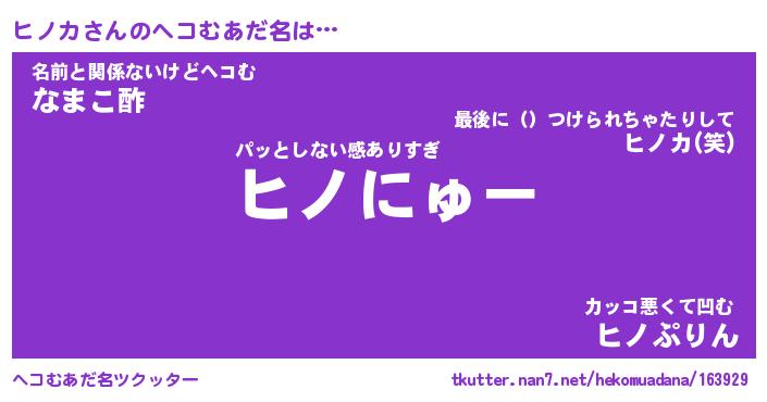 | ファンタジー風あだ名 | 『ヒノフェル』『エターナルヒノカー』 |