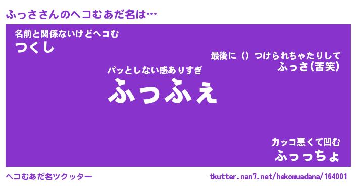 | 男性向けラノベタイトル風あだ名 | 『ふっさの憂鬱』 |