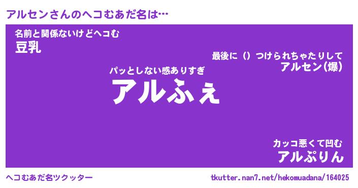 | ヒーロー風カッコイイあだ名 | 『スーパーアルセン』『天弓騎士アル』 |