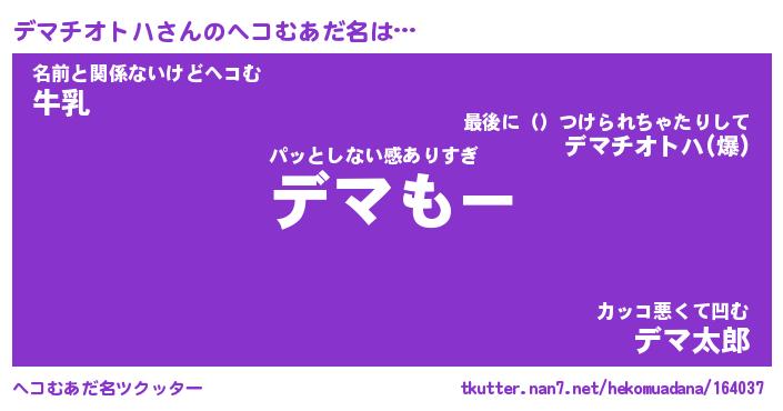 | 男性向けラノベタイトル風あだ名 | 『デマチオトハの憂鬱』 |