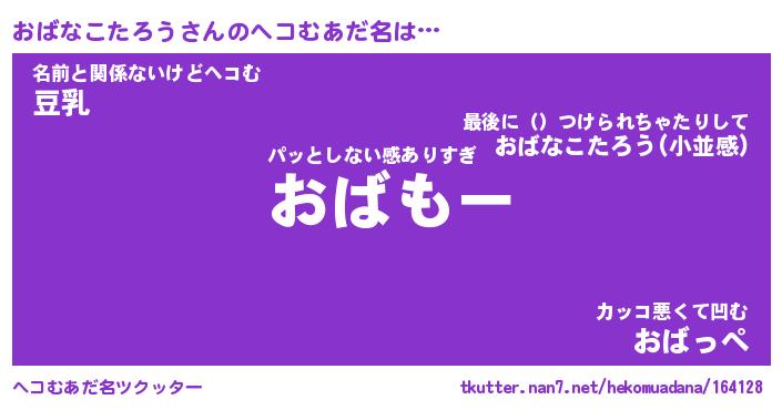 | ヒーロー風カッコイイあだ名 | 『スーパーオバナコタロウ』 |