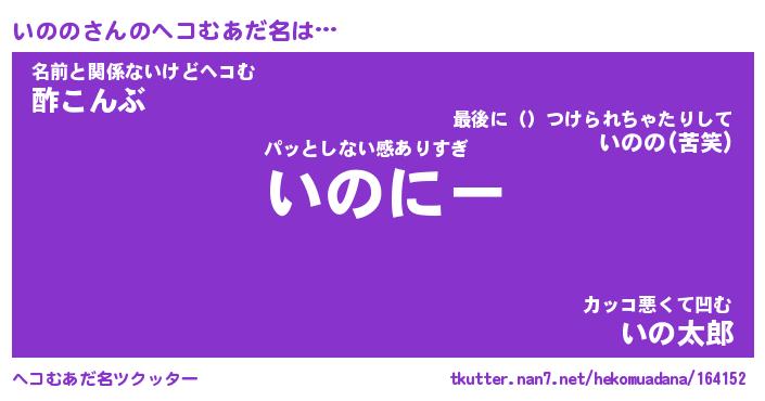 | ヒーロー風カッコイイあだ名 | 『スーパーイノノ』『ウルトラいののマン』 |