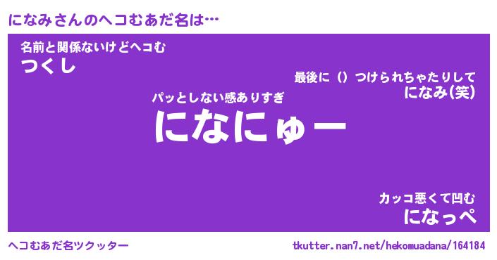 | ヒーロー風カッコイイあだ名 | 『スーパーニナミ』『ウルトラになみマン』 |