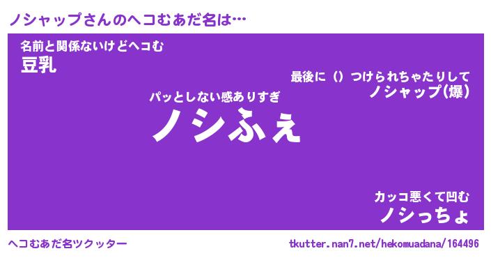 | ファンタジー風あだ名 | 『ノシフェル』『エターナルノシャップー』 |