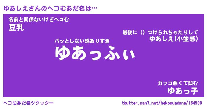 | 意味不明あだ名 | 『ペロリンゆあしえ』『永久保存ゆあしえ』 |