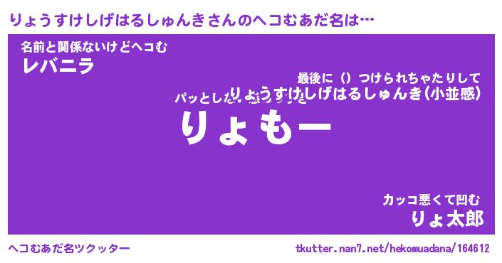 | 意味不明あだ名 | 『ペロリンりょうすけしげはるしゅんき』 |