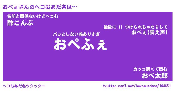 | 男性向けラノベタイトル風あだ名 | 『おぺぇの憂鬱』 |