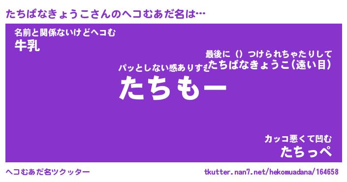 | 胡散臭い通販商品みたいなあだ名 | 『モテモテ間違いなし霊験あらたかなお札…その名も「たちばなきょうこ」』 |