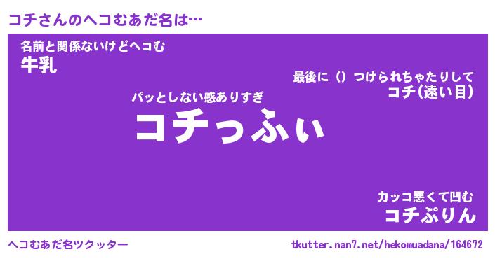 | 男性向けラノベタイトル風あだ名 | 『コチの憂鬱』『ノーゲーム・ノーコチ』 |