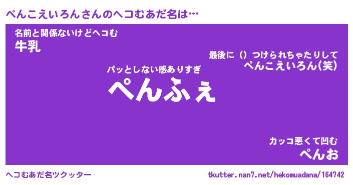 | 意味不明あだ名 | 『ペロリンぺんこえいろん』 |