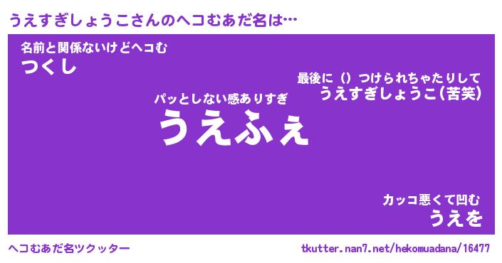| 胡散臭い通販商品みたいなあだ名 | 『必ず成功するブレスレット…その名も「うえすぎしょうこ」』 |