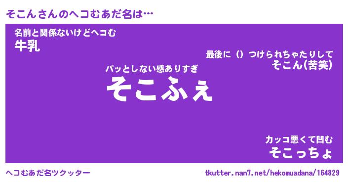 | 意味不明あだ名 | 『ペロリンそこん』『そこんフォーエバー』 |