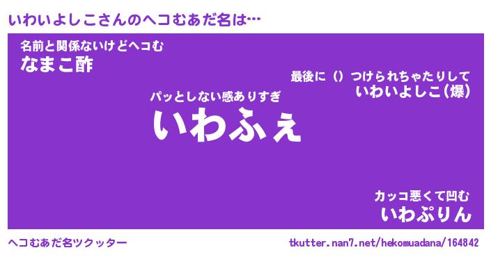 | 意味不明あだ名 | 『ペロリンいわいよしこ』 |