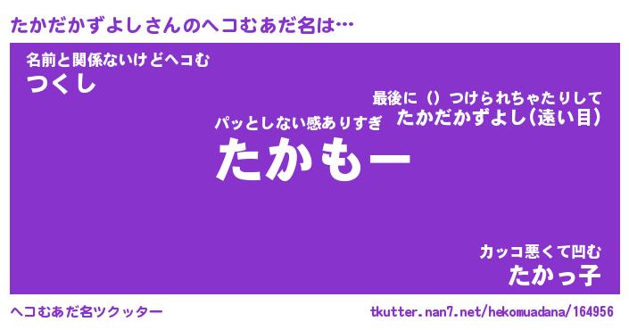 | 恥ずかしいあだ名 | 『プリティーたかだかずよし』『たかちん』 |