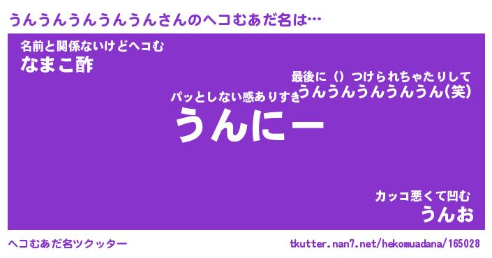 | ポケモン風あだ名 | 『ウンチュウ』『ウンウダネ』 |