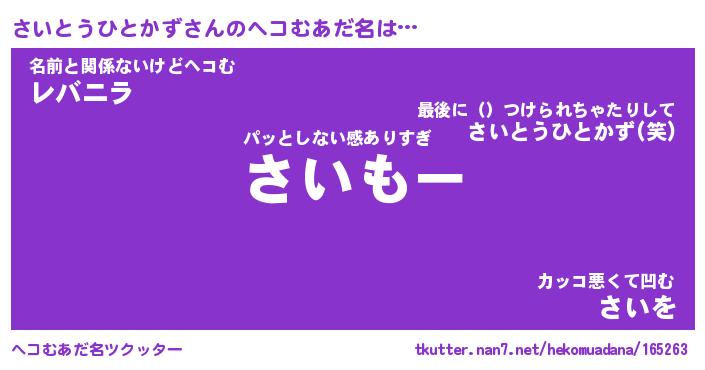 | 意味不明あだ名 | 『ペロリンさいとうひとかず』 |