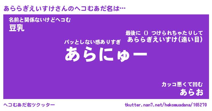 | 胡散臭い通販商品みたいなあだ名 | 『モテモテ間違いなし水晶球…その名も「あららぎえいすけ」』 |