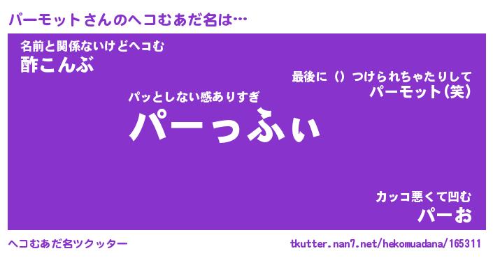 | 意味不明あだ名 | 『ペロリンパーモット』 |