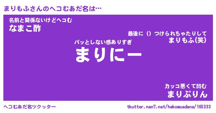 | ファンタジー風あだ名 | 『マリフェル』『エターナルマリモフー』 |
