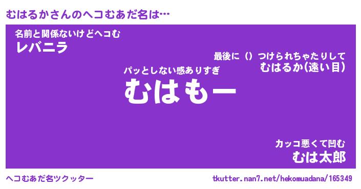 | 男性向けラノベタイトル風あだ名 | 『むはるかの憂鬱』 |