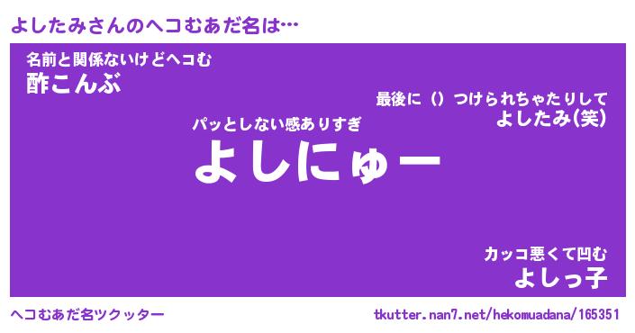 | 意味不明あだ名 | 『ペロリンよしたみ』『永久保存よしたみ』 |