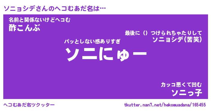 | ファンタジー風あだ名 | 『ソニフェル』『エターナルソニョシデー』 |