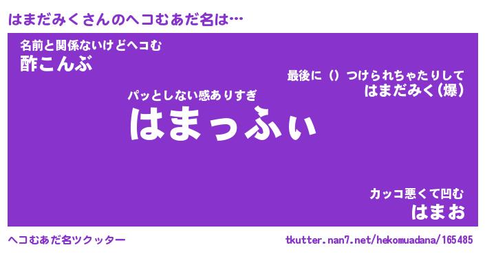 | 2回繰り返すあだ名 | 『はまはま』『ははまま』『あんあん』 |