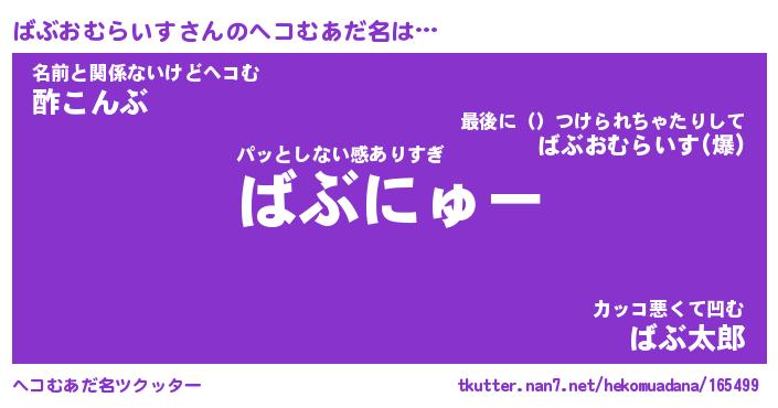 | 欧米人風あだ名 | 『マイケルばぶおむらいす』 |