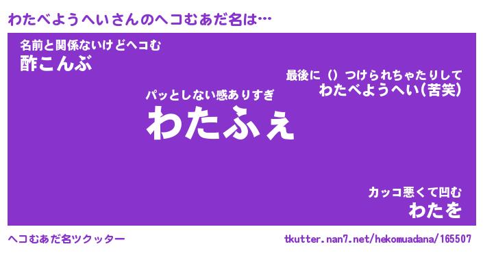 | 欧米人風あだ名 | 『マイケルわたべようへい』 |