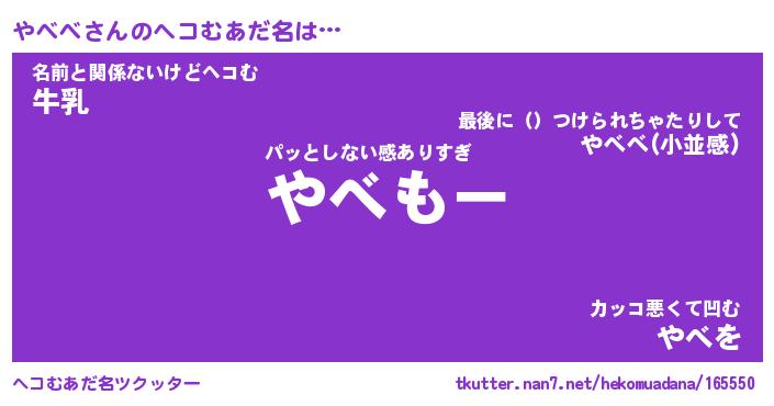 | 意味不明あだ名 | 『ペロリンやべべ』『やべべフォーエバー』 |