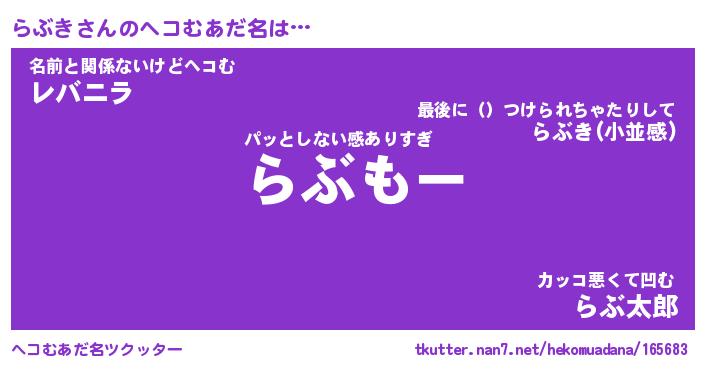 | 2回繰り返すあだ名 | 『らぶらぶ』『ららぶぶ』『けろけろ』 |