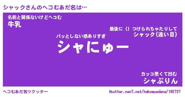 | ヒーロー風カッコイイあだ名 | 『スーパーシャック』『幻影騎士シャ』 |