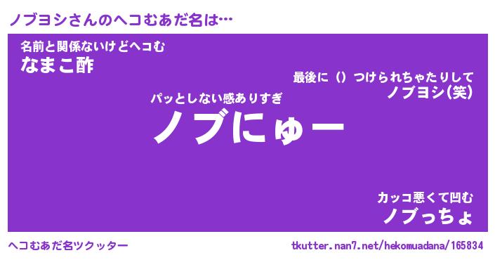| ファンタジー風あだ名 | 『ノブフェル』『エターナルノブヨシー』 |