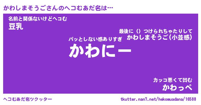 | ヒーロー風カッコイイあだ名 | 『スーパーカワシマソウゴ』 |