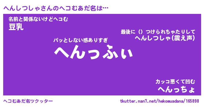 | 2回繰り返すあだ名 | 『へんへん』『へへんん』『なあなあ』 |