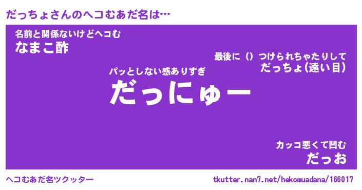 | 自動車の名前っぽいあだ名 | 『ダッティマ』『ダスラー』『ダンR』 |
