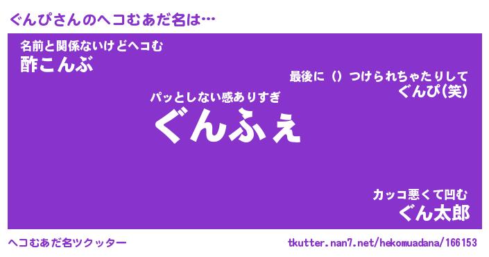 | ファンタジー風あだ名 | 『グンフェル』『エターナルグンピー』 |